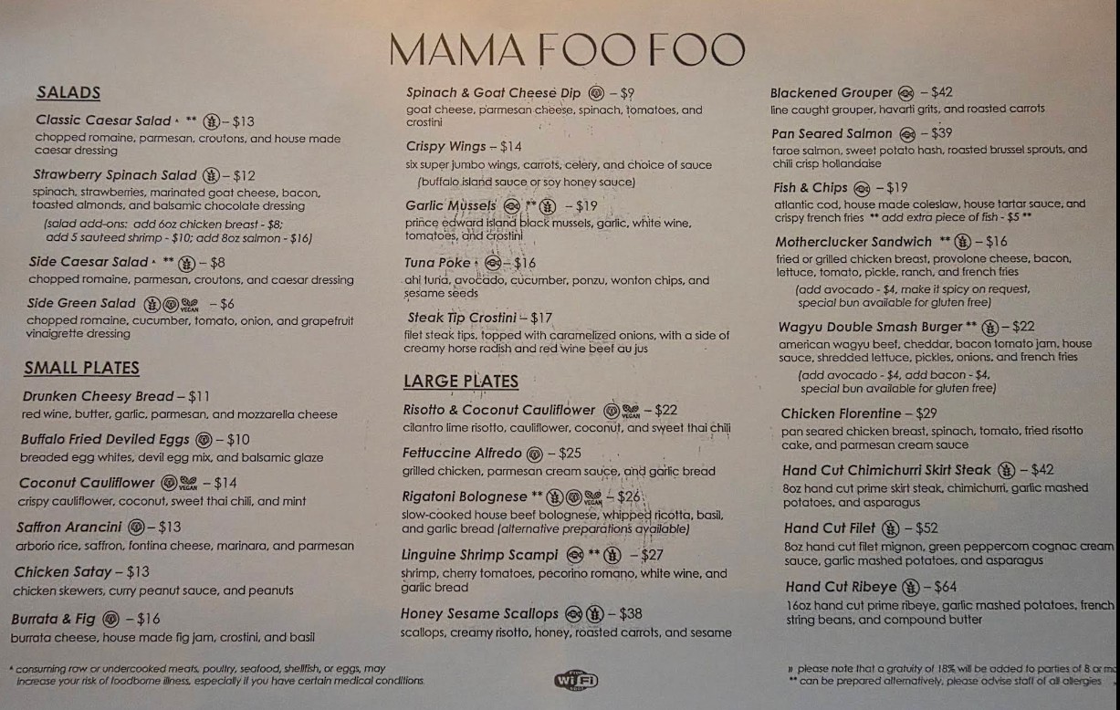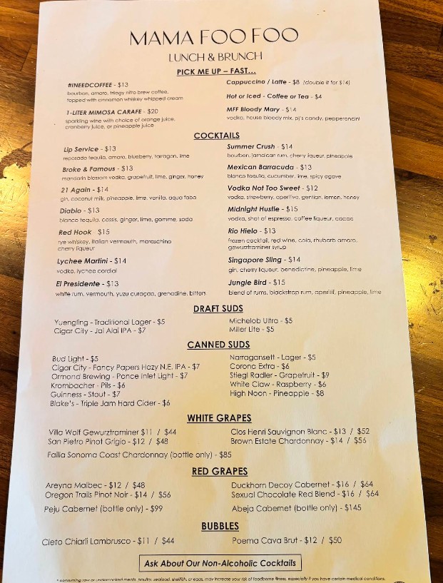 "Welcome to Restaurant Mama Foo Foo, the perfect spot in Daytona Beach for indulging in delicious tapas, fresh seafood, and creative cocktails! Our menu features a wide variety of mouthwatering dishes made with the finest ingredients, offering a unique culinary experience. Whether you're craving a fresh seafood platter or want to savor our one-of-a-kind tapas, we have something to satisfy every palate. Join us by the water and enjoy an unforgettable dining experience with great food and an amazing atmosphere!"